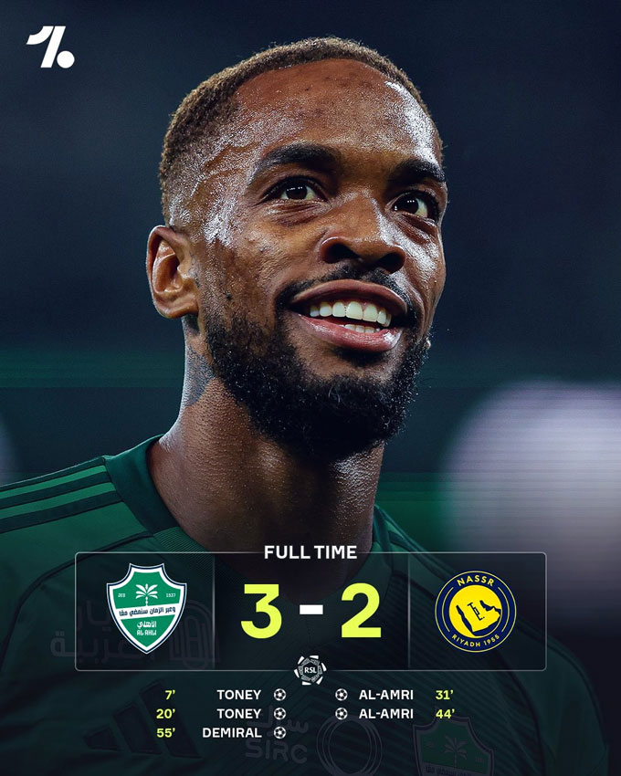 Al Ahli: Toney (7', 20'), Demiral (55')