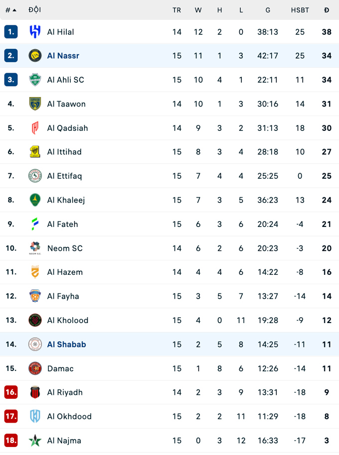 Đội hình thi đấu Al Nassr vs Al Shabab