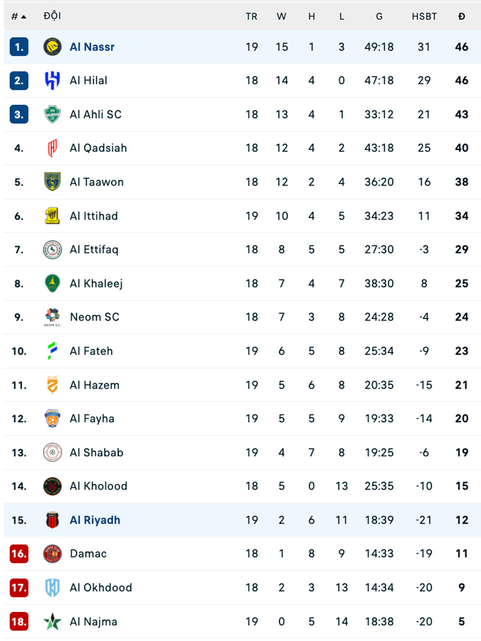 Đội hình thi đấu Al Riyadh vs Al Nassr