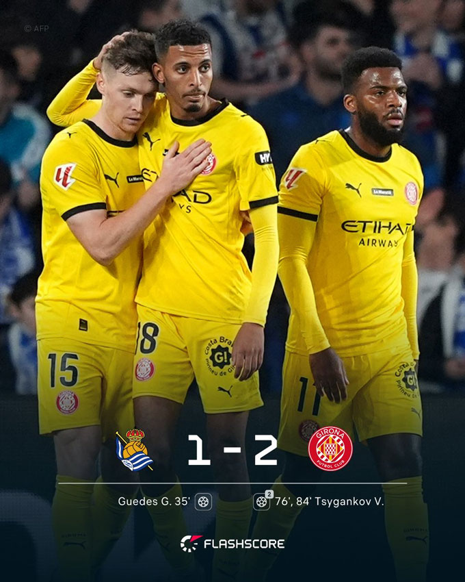Tại vòng 16 La Liga, Girona đã có chiến thắng 2-1 ngay trên sân của Real Sociedad. Goncalo Guedes mở tỷ số cho đội chủ nhà ở phút 35 nhưng cú đúp của Tsygankov ở các phút 76 và 84 đã giúp Girona ngược dòng thành công.
