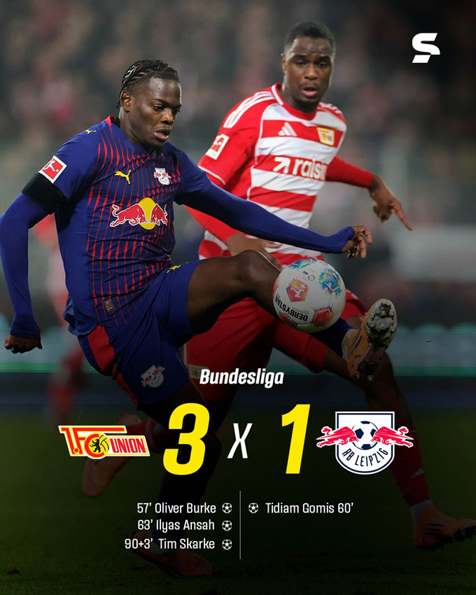 Ở trận đấu sớm vòng 14 Bundesliga, Union Berlin gây sốc khi đánh bại RB Leipzig với tỷ số 3-1. Kết quả này giúp Union Berlin leo lên vị trí thứ 8 trên BXH trong khi RB Leipzig có nguy cơ bị đội đầu bảng Bayern nới rộng cách biệt.