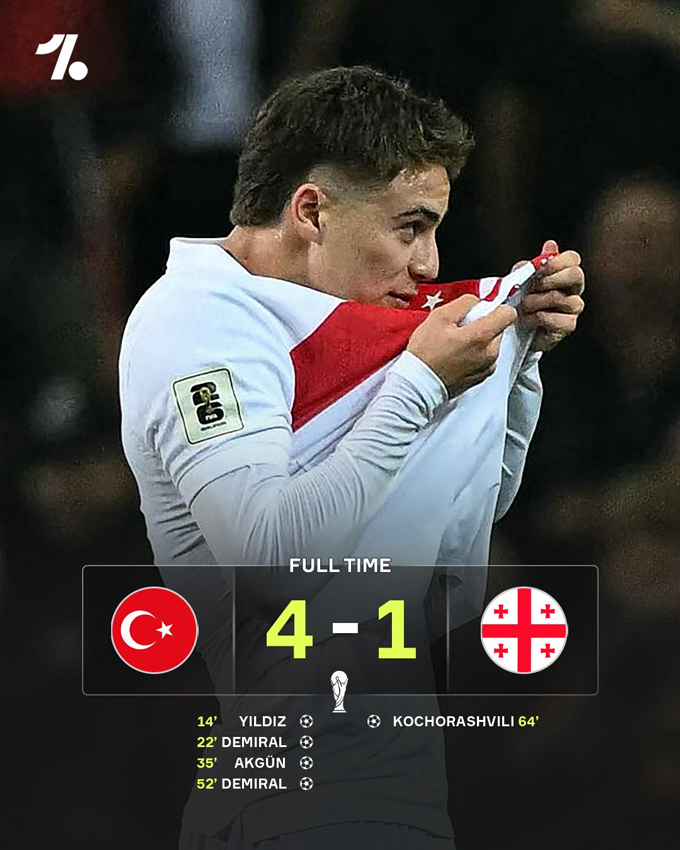 Trong khi đó, Thổ Nhĩ Kỳ tiếp tục duy trì phong độ ấn tượng khi huỷ diệt Georgia với tỷ số 4-1 trên sân nhà.