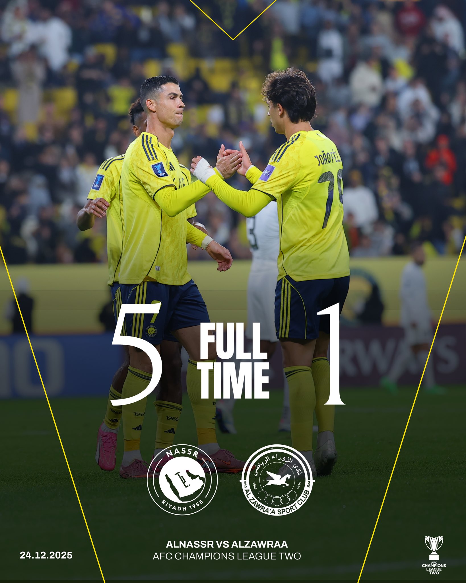 Như vậy, Al Nassr khép lại vòng bảng với vị thế vững chắc, khẳng định sức mạnh của ứng cử viên hàng đầu cho chức vô địch AFC Champions League Two 2025/26.