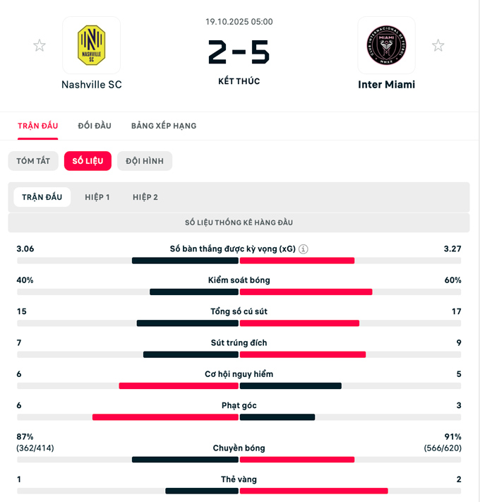 Đội hình thi đấu Nashville vs Inter Miami