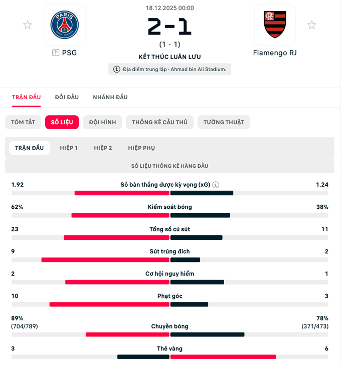Trong màn đấu súng cân não, thủ môn Safonov đã trở thành người hùng của PSG khi cản phá thành công 4 lượt sút từ các cầu thủ Flamengo, giúp đại diện châu Âu giành chiến thắng 2-1.