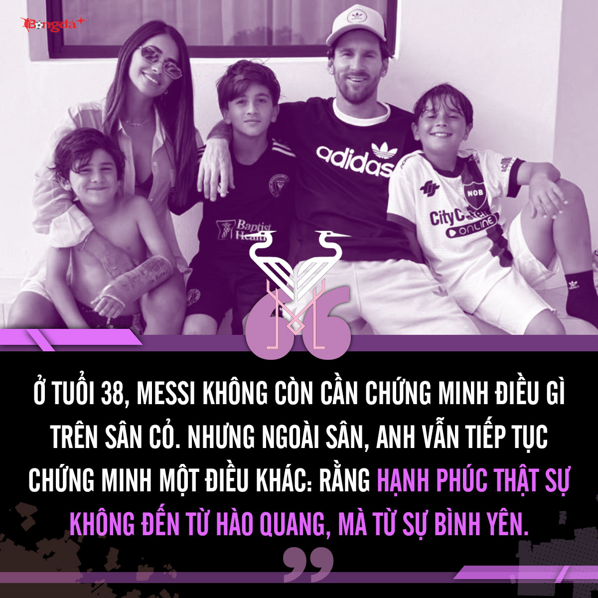 Ở tuổi 38, Messi không còn cần chứng minh điều gì trên sân cỏ. Nhưng ngoài sân, anh vẫn tiếp tục chứng minh một điều khác: rằng hạnh phúc thật sự không đến từ hào quang, mà từ sự bình yên.