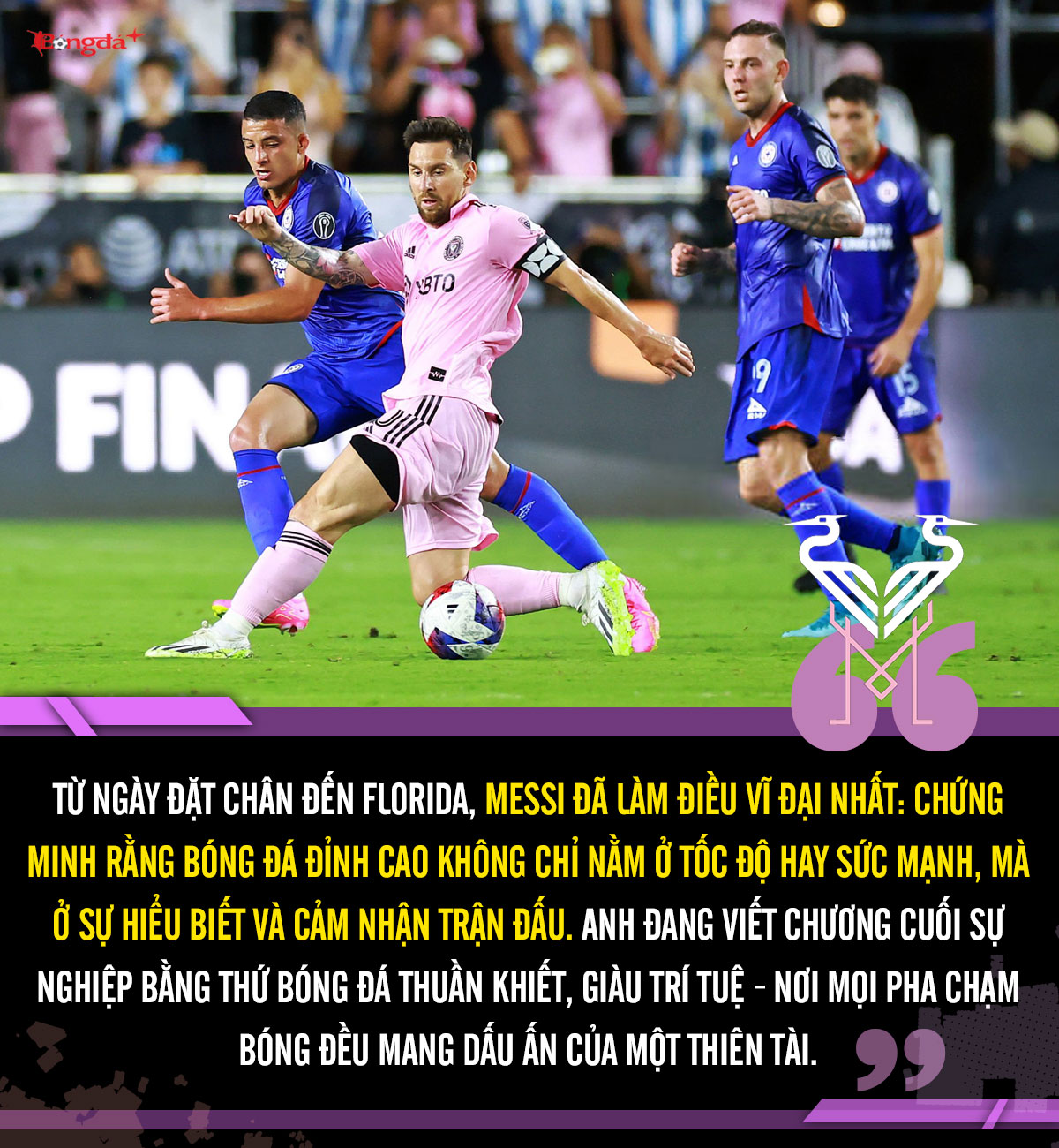 Từ ngày đặt chân đến Florida, Messi đã làm điều vĩ đại nhất: chứng minh rằng bóng đá đỉnh cao không chỉ nằm ở tốc độ hay sức mạnh, mà ở sự hiểu biết và cảm nhận trận đấu. Anh đang viết chương cuối sự nghiệp bằng thứ bóng đá thuần khiết, giàu trí tuệ – nơi mọi pha chạm bóng đều mang dấu ấn của một thiên tài.