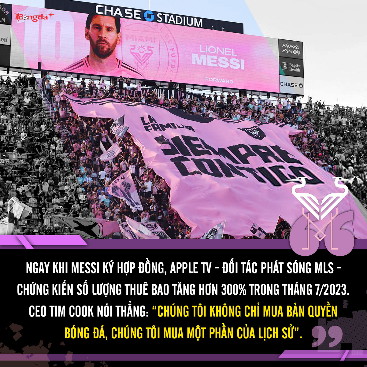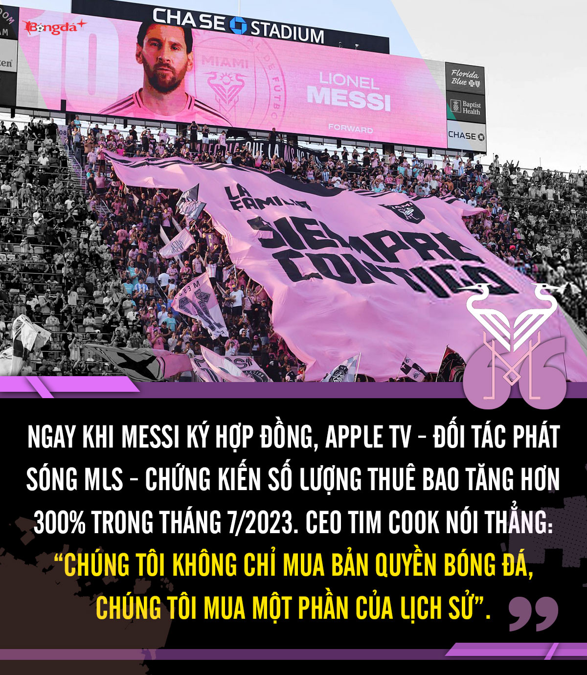 Ngay khi Messi ký hợp đồng, Apple TV – đối tác phát sóng MLS – chứng kiến số lượng thuê bao tăng hơn 300% trong tháng 7/2023. CEO Tim Cook nói thẳng: “Chúng tôi không chỉ mua bản quyền bóng đá, chúng tôi mua một phần của lịch sử”.