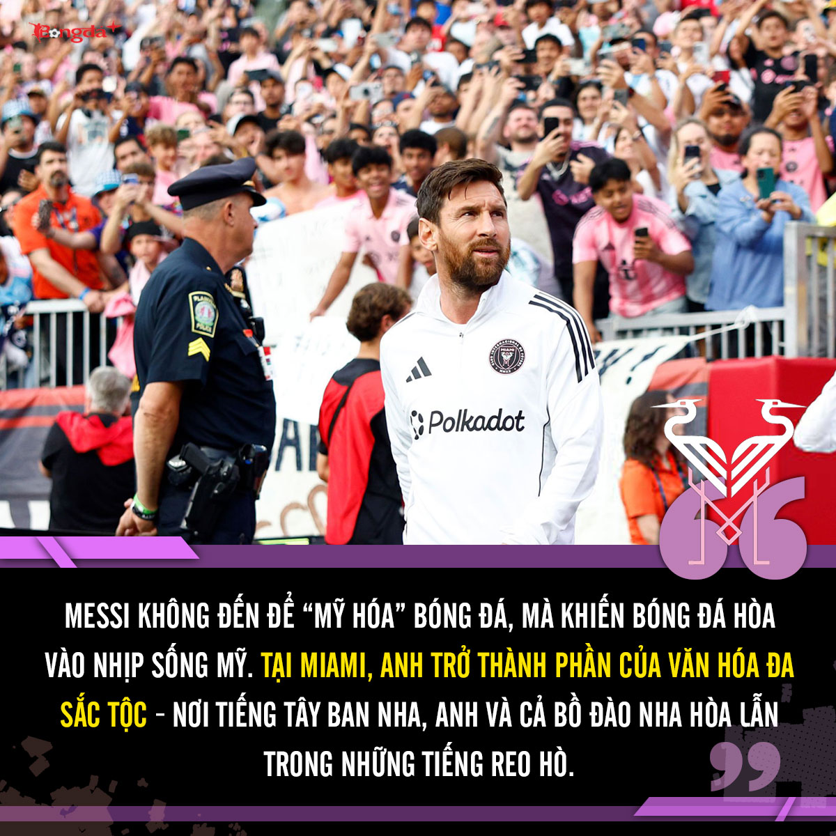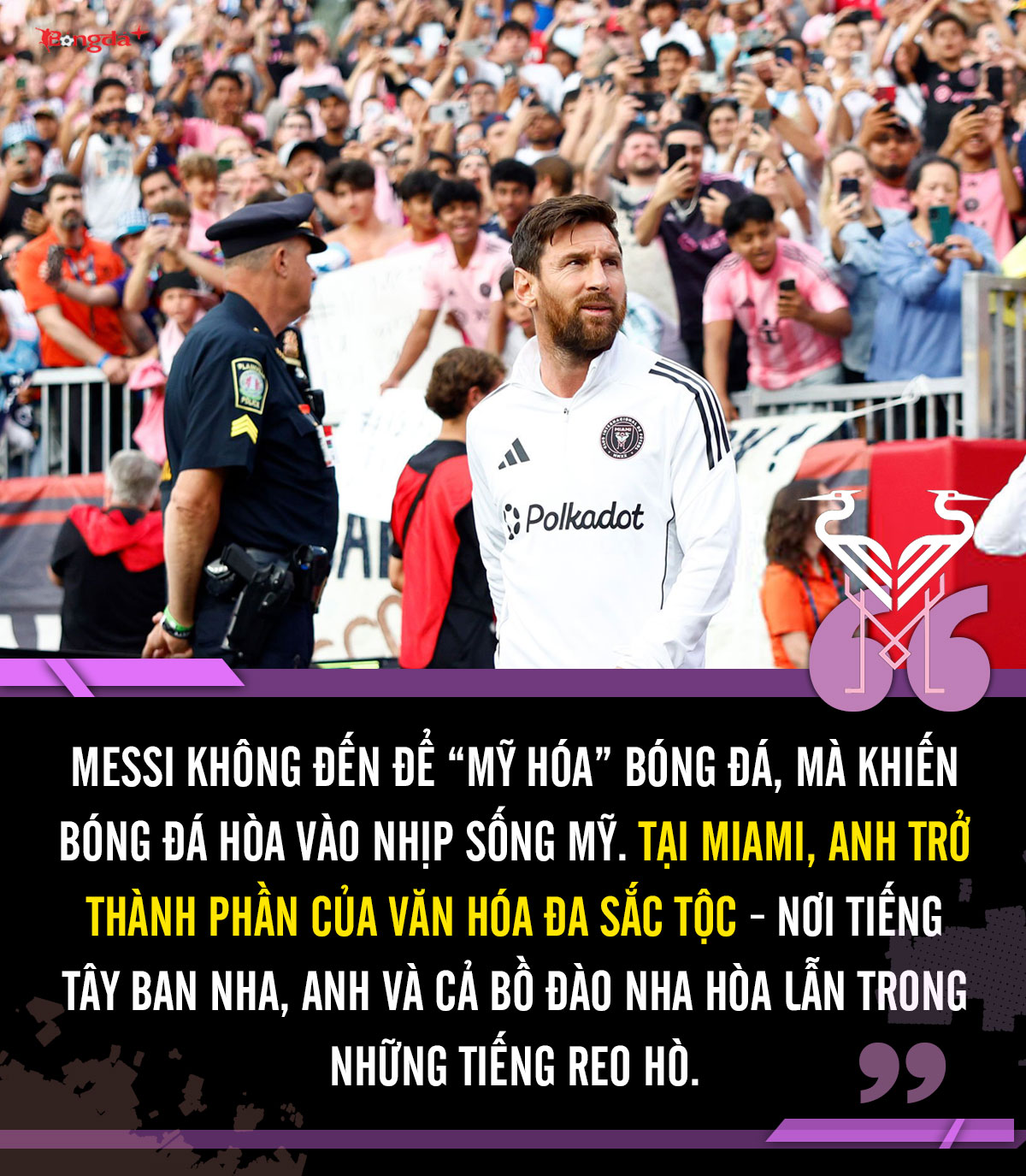 Messi không đến để “Mỹ hóa” bóng đá, mà khiến bóng đá hòa vào nhịp sống Mỹ. Tại Miami, anh trở thành phần của văn hóa đa sắc tộc — nơi tiếng Tây Ban Nha, Anh và cả Bồ Đào Nha hòa lẫn trong những tiếng reo hò.