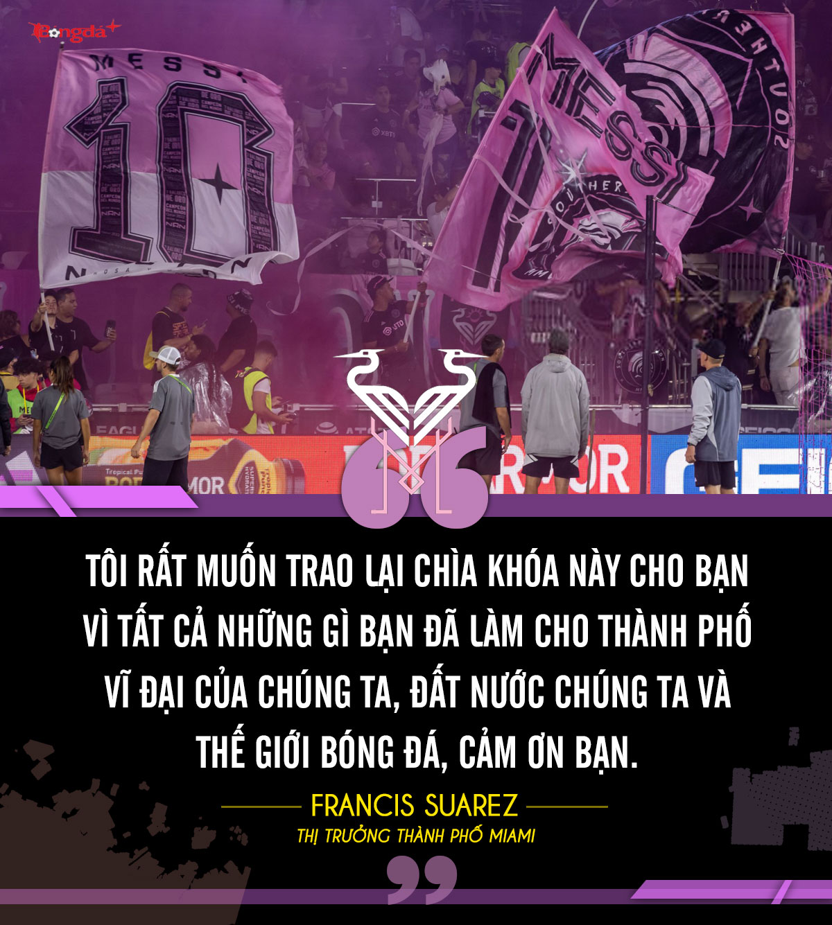 Thị trưởng Francis Suarez khi trao chìa khóa đã nói rõ: “Tôi rất muốn trao lại chìa khóa này cho bạn vì tất cả những gì bạn đã làm cho thành phố vĩ đại của chúng ta, đất nước chúng ta và thế giới bóng đá, cảm ơn bạn”. Lời phát biểu ấy cho thấy, thành phố đánh giá cao những gì Messi đã mang lại – không chỉ trên sân bóng mà còn cho danh tiếng, hình ảnh của Miami.