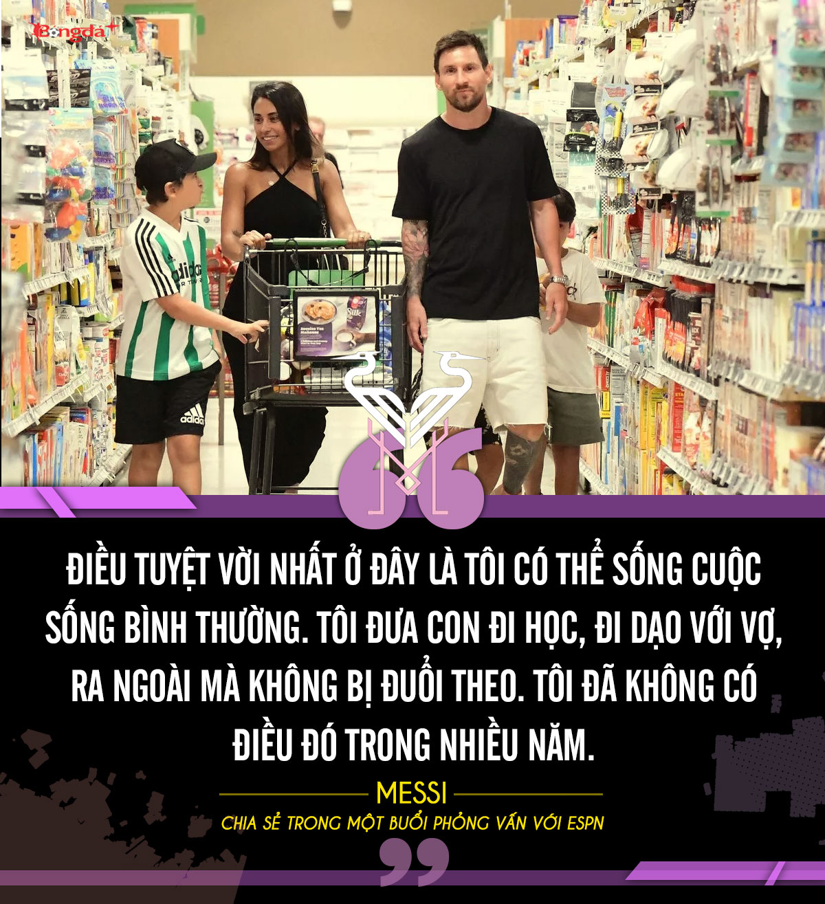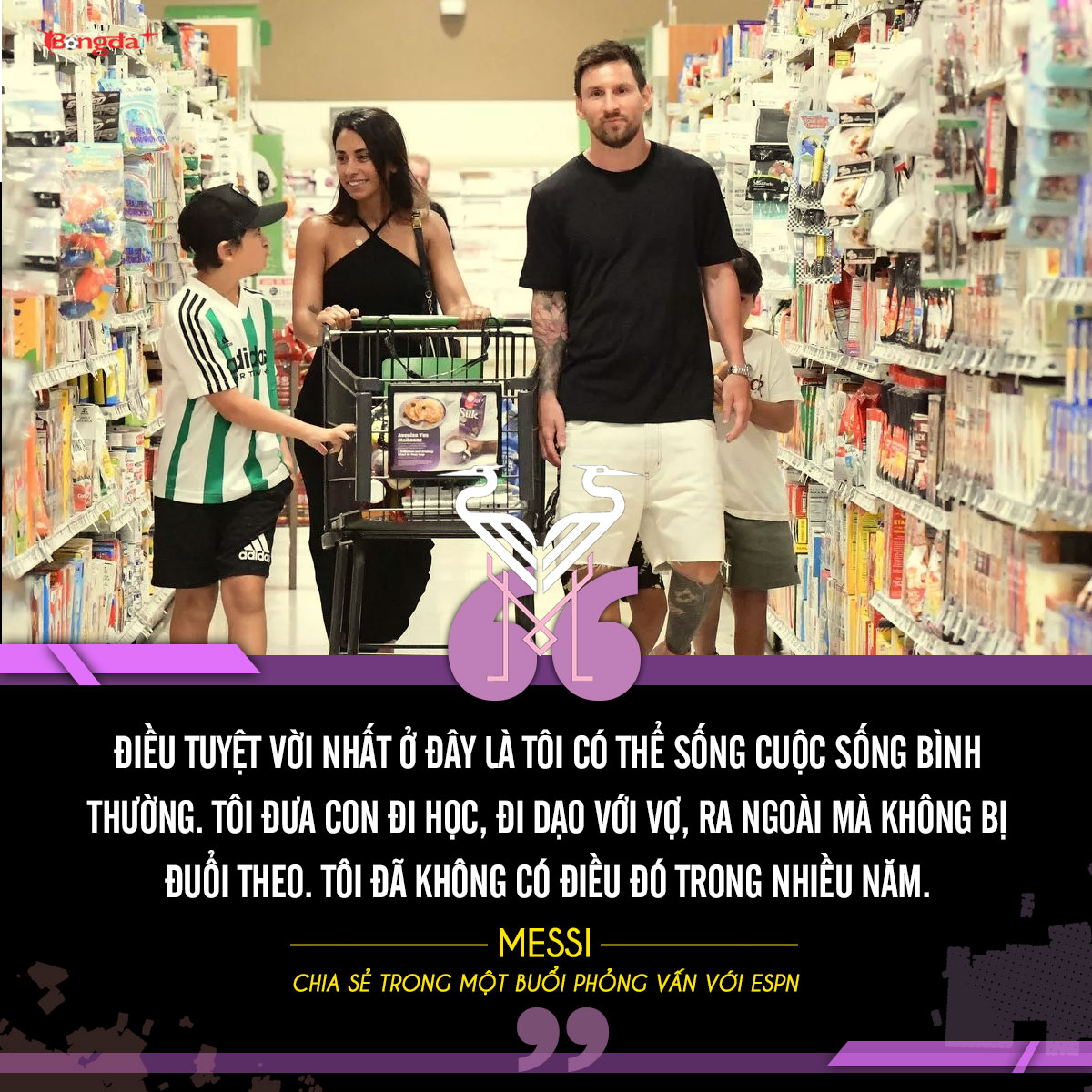 Messi từng chia sẻ trong một buổi phỏng vấn với ESPN: “Điều tuyệt vời nhất ở đây là tôi có thể sống cuộc sống bình thường. Tôi đưa con đi học, đi dạo với vợ, ra ngoài mà không bị đuổi theo. Tôi đã không có điều đó trong nhiều năm”.