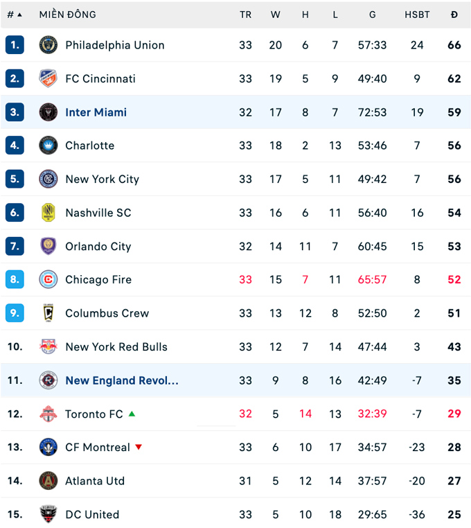 Chiến thắng này giúp Inter Miami leo lên vị trí thứ 3 trên BXH MLS với 59 điểm sau 32 trận. Họ kém 2 đội xếp trên là Cincinnati và Philadelphia Union lần lượt 3 và 7 điểm. Tuy nhiên, Miami đang thi đấu ít hơn các đối thủ này 1 trận.