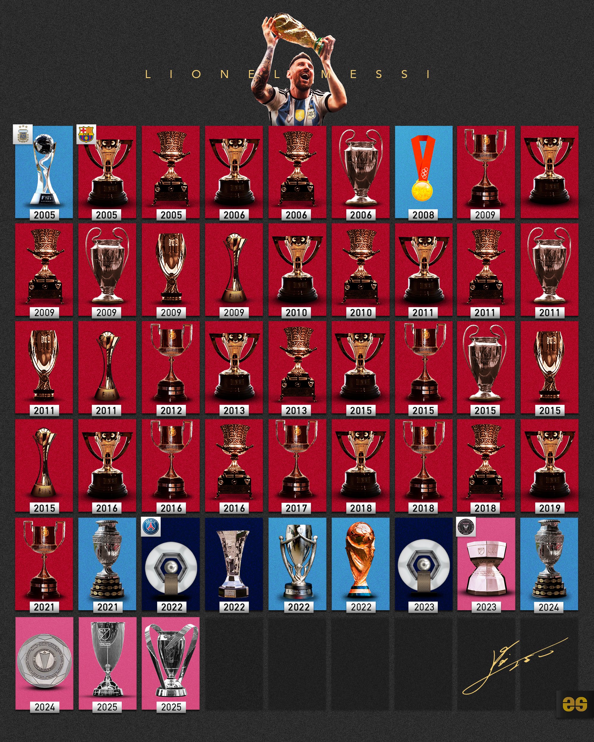 Đây cũng là một khoảnh khắc quan trọng trong sự nghiệp của El Pulga, khi siêu sao người Argentina giành được MLS Cup, nâng tổng số danh hiệu trong sự nghiệp của mình lên con số 48, tiếp tục củng cố vị thế là cầu thủ giàu thành tích nhất trong lịch sử bóng đá. Cụ thể, anh có 6 danh hiệu với ĐT Argentina, 35 với Barca, 3 cùng PSG và 4 ở Inter Miami Cần nói thêm, sở dĩ một số nguồn vẫn tính Messi chỉ có 47 danh hiệu là bởi FIFA không tính chức vô địch miền Đông của Inter Miami cách đây vài ngày.
