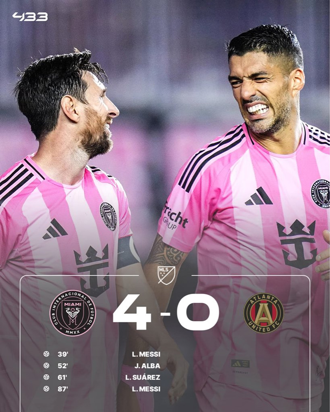 Chiến thắng 4-0 trước Atlanta United giúp Inter Miami áp sát ngôi Á quân bảng miền Đông MLS 2025 trước vòng đấu cuối. Trên BXH tổng, Inter Miami tạm đứng thứ 4.