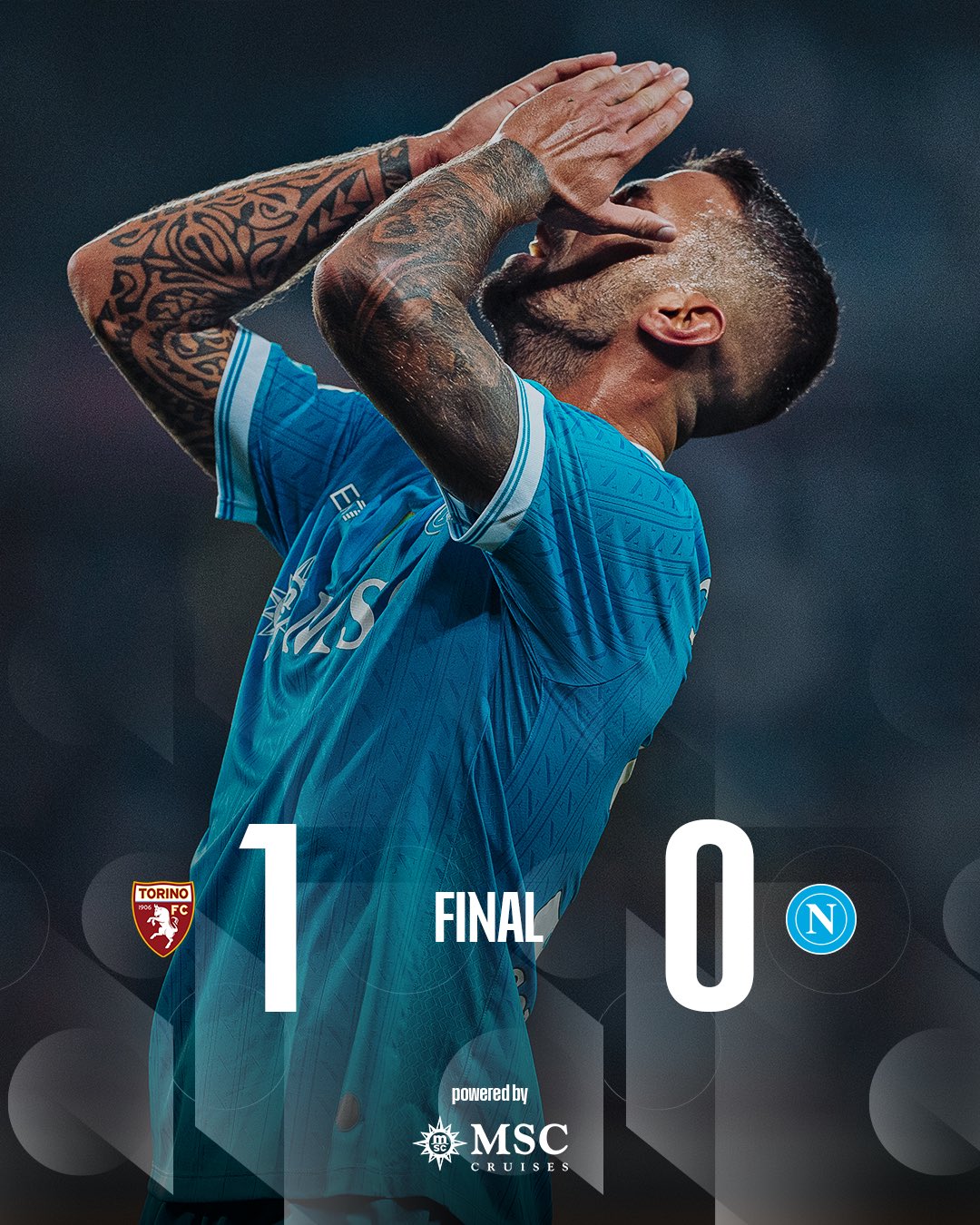 HLV Conte cũng thực hiện nhiều sự thay đổi nhân sự nhằm cải thiện, nhưng không thành công. Thua trận này, Napoli mất ngôi đầu Serie A bởi ở trận đấu sau đó vài giờ, Inter Milan đã có chiến thắng 1-0 quan trọng ngay trên sân AS Roma. Người ghi bàn duy nhất cho Inter là tài năng trẻ Ange-Yoan Bonny ở ngay phút thứ 6. Trên BXH Serie A, cả Inter và Napoli đều có cùng 15 điểm sau 7 vòng, nhưng đội bóng của Conte xếp thứ hai vì thua chỉ số phụ.