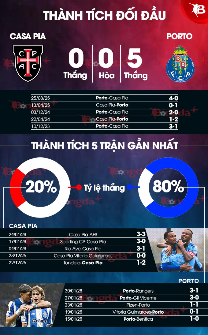 Mùa giải 2025/26 là chiến dịch thứ tư liên tiếp Casa Pia góp mặt tại giải đấu hàng đầu Bồ Đào Nha. Tuy nhiên, đội bóng đến từ Rio Maior hiện nằm trong nhóm đá play-off trụ hạng và đang phải vật lộn để trụ lại. Đội chủ nhà đã thi đấu không tốt trong thời gian gần đây, chỉ giành được 2 điểm trong 4 trận đấu gần nhất.