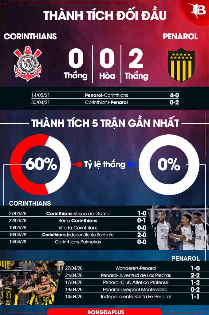 Với tương quan lực lượng, những phân tích nói trên, nhiều khả năng Penarol sẽ giành được 1 kết quả khả quan trong chuyến làm khách tại Corinthians.