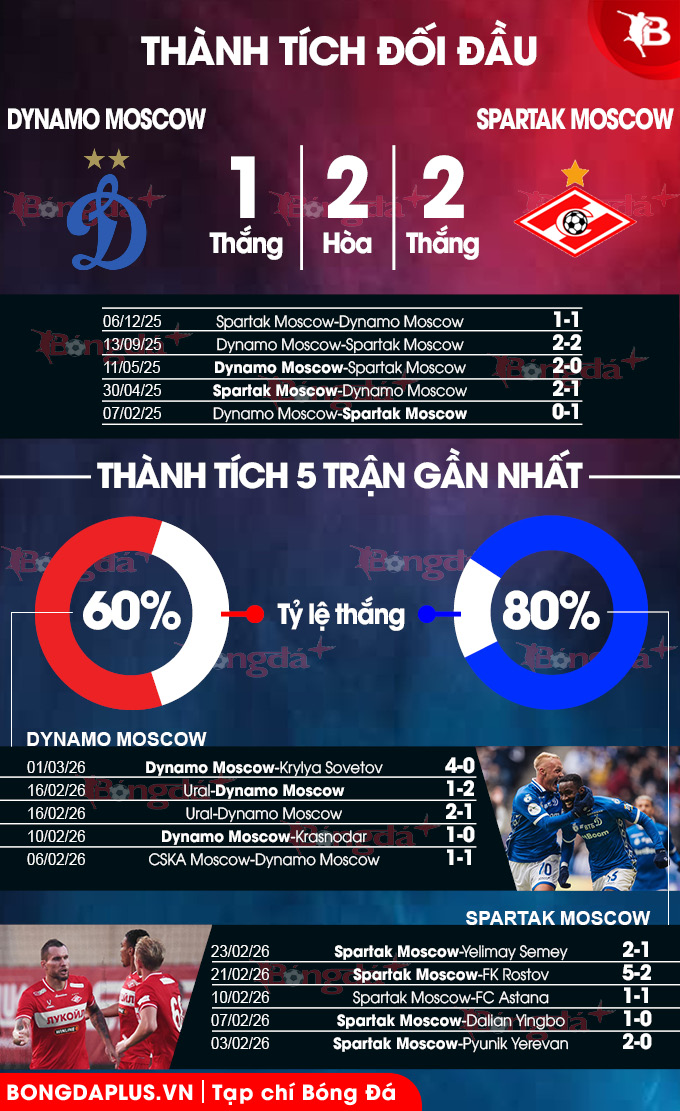Phân tích dữ liệu chuyên sâu Dynamo Moscow vs Spartak Moscow