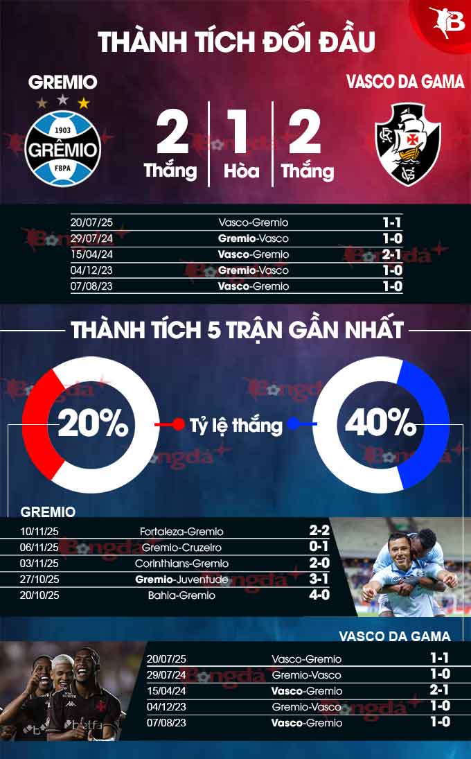 Với 2 điểm nhiều hơn Gremio, Vasco da Gama đang có lợi thế hơn so với đối thủ của mình. Tuy nhiên, đội bóng của HLV Fernando Diniz đang thi đấu rất tệ gần đây và rất cần phải nhanh chóng tích lũy điểm số. Vasco da Gama đã thua 3 trận gần nhất với hiệu số bàn thắng bại 1-8. Trong trận đấu gần nhất, họ đã để thua Juventude 1-3 trên sân nhà. Đội chủ nhà kiểm soát bóng 74% và có rất nhiều cơ hội ghi bàn, nhưng hàng thủ của họ một lần nữa lại bộc lộ quá nhiều sai sót.