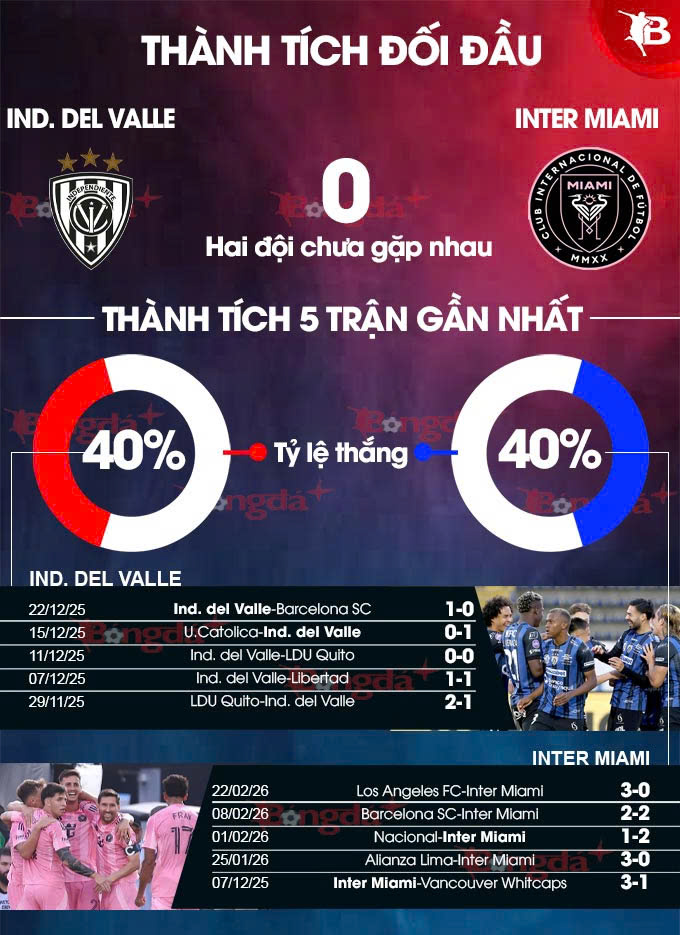 Do đó, họ đang hướng tới mùa bóng 2026 thành công hơn. Dù vậy, CLB này lại có khởi đầu rất tệ khi để thua trước Los Angeles FC với tỷ số 0-3 ở ngày ra quân của mùa bóng mới. Đó là thất bại mà Inter Miami cần phải rút kinh nghiệm ngay lập tức. So về danh tiếng, Ind. del Valle không thể bằng Inter Miami. Tuy nhiên, đội bóng đến từ Ecuador này chắc chắn sẽ chơi hết sức trước Inter Miami.