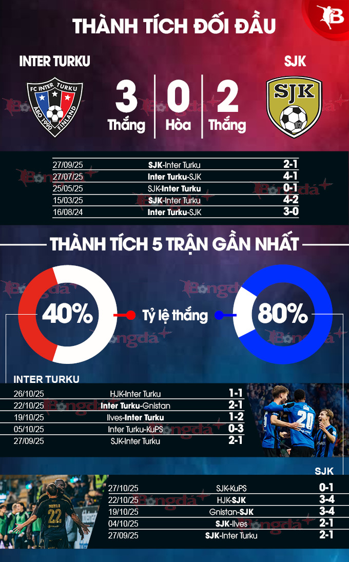 - Từ 3 đến 4 bàn thắng: 4/5 trận gần đây của Inter Turku đều có từ 3 đến 4 bàn thắng được ghi. Lịch sử đối đầu cũng chứng kiến 7/8 trận chính thức gần nhất giữa đôi bên cũng xuất hiện từ 3 đến 4 pha làm bàn.