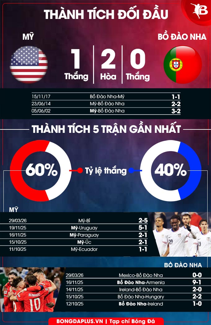 Phân tích phong độ Mỹ vs Bồ Đào Nha