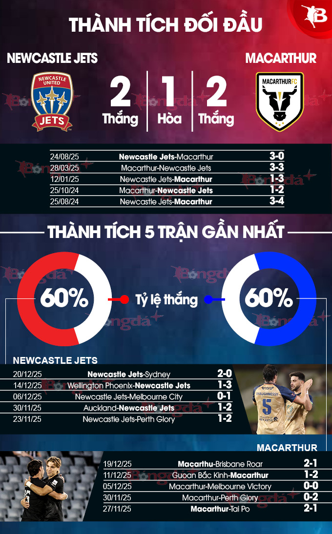 Thế nên, Macarthur có lý do để tự tin khi hành quân đến sân của Newcastle Jets. Đây là trận đấu mà đội khách nhiều khả năng sẽ ra về với kết quả từ hòa đến thắng.