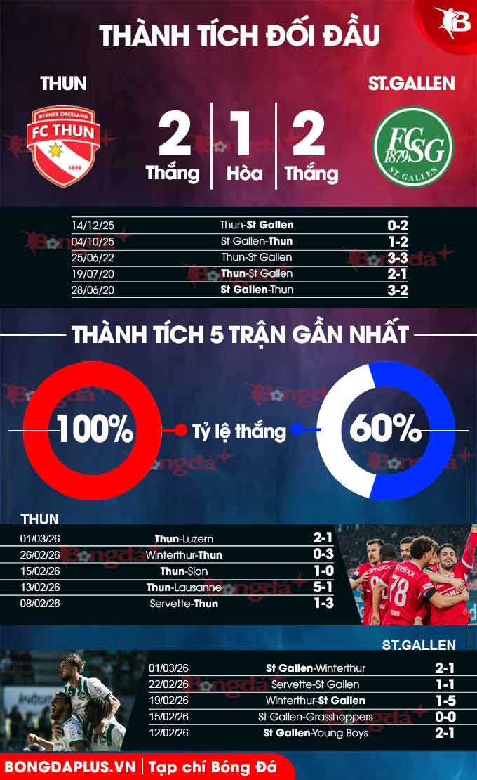 Phân tích phong độ Thun vs St. Gallen