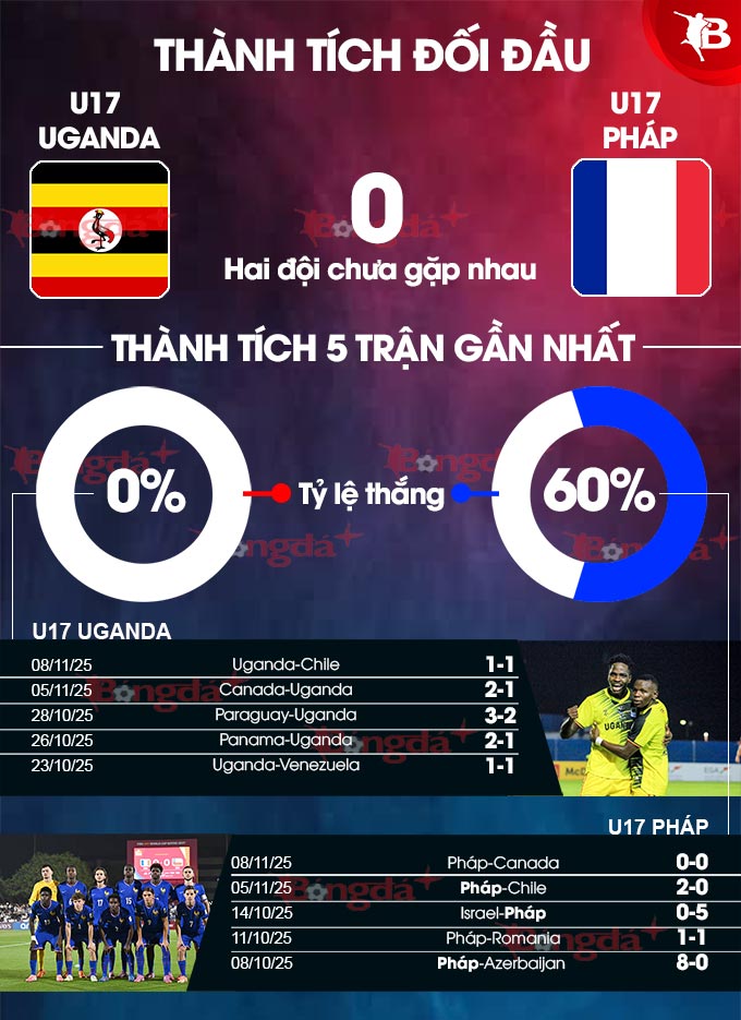 BONGDAPLUS dự đoán tỉ số U17 Uganda vs U17 Pháp