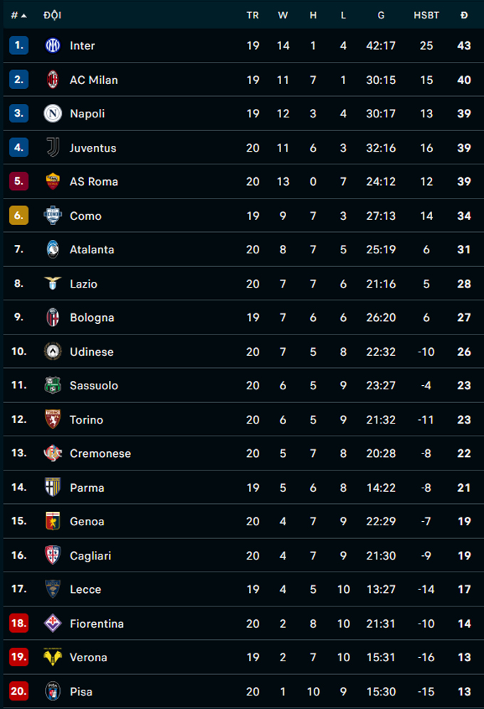 Kết quả này giúp Juve vươn lên vị trí thứ tư trên bảng xếp hạng Serie A, kém đội đầu bảng Inter Milan 4 điểm nhưng đá nhiều hơn một trận. Trong khi đó, Cremonese giậm chân ở vị trí thứ 13 sau khi nhận thất bại thứ 4 trong 6 vòng đấu gần nhất.