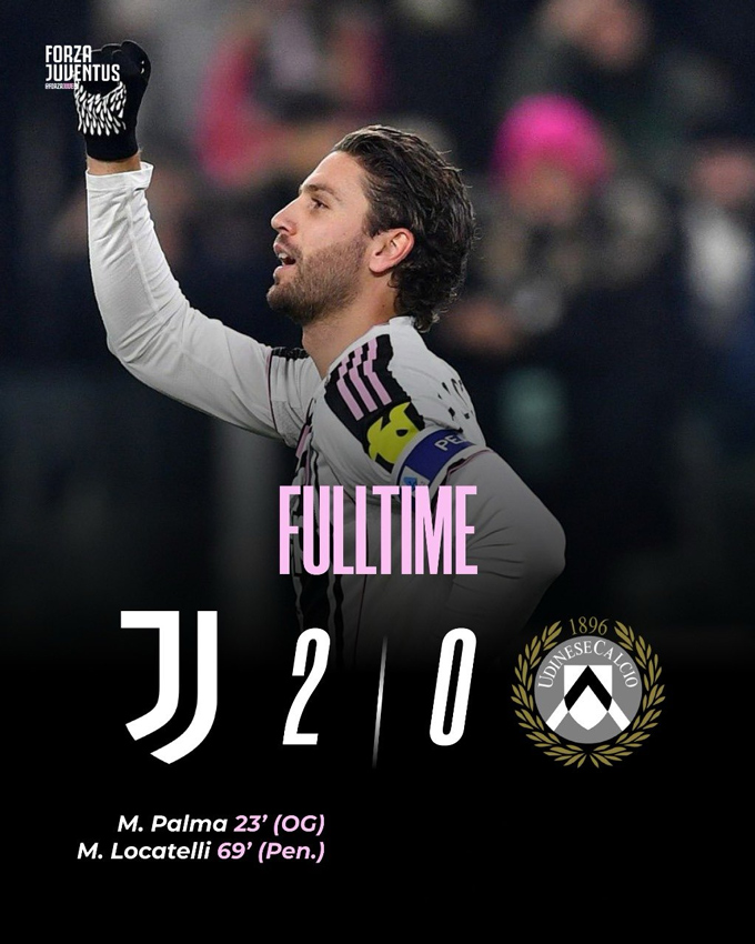 Udinese cố gắng vùng lên nhưng bất thành. Những đường lên bóng của họ trong hiệp một bị Juventus bẻ gãy quá dễ dàng. Bước sang hiệp hai, tình hình không có sự thay đổi. Juventus vẫn chơi trên cơ và họ có được bàn thắng nhân đôi cách biệt ở phút 69. Locatelli lập công khi anh thực hiện tốt tình huống đá phạt đền.
