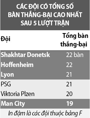 Champions League, cả 4 đội thuộc bảng F đều nằm trong Top 6 đội có tổng số bàn thắng-bại cao nhất giải. Trong ngày NHM chia tay vòng bảng Champions League, bảng F sẽ dành tặng NHM những cơn mưa gôn!