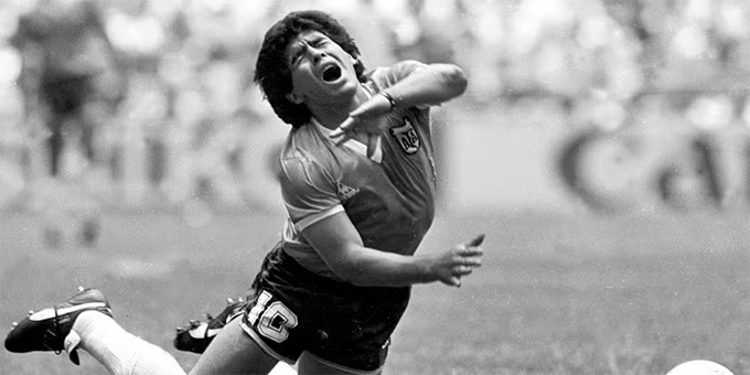 Một trong nhiều bức ảnh nổi tiếng của Maradona khắc họa hình ảnh 6 cầu thủ Bỉ cùng lao về phía Cậu bé vàng trong trận bán kết World Cup 1986. Đó chính là kiểu chú ý mà một trong những cầu thủ vĩ đại nhất mọi thời đại mong muốn mỗi khi có bóng trong chân. Maradona là cầu thủ duy nhất trong lịch sử World Cup bị phạm lỗi hơn 50 lần chỉ trong một giải đấu. Và điều này đã xảy ra hai lần, vào năm 1986 và 1990.