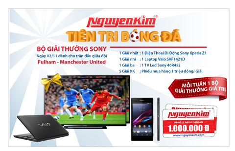 Giải thưởng hấp dẫn dành cho nhà tiên tri bóng đá trận đầu tiên của chương trình đêm 2/11/2013 sẽ là Bộ giải thưởng SONY giá trị bao gồm: