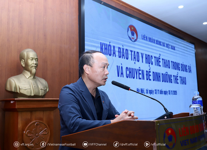 Phát biểu chỉ đạo tại lễ khai mạc, thay mặt Thường trực BCH VFF, Chủ tịch Trần Quốc Tuấn nhấn mạnh: “Đây là một hoạt động chuyên môn có ý nghĩa thiết thực, góp phần nâng cao năng lực, cập nhật kiến thức và chia sẻ kinh nghiệm cho đội ngũ bác sĩ, nhân viên y tế đang làm việc tại các câu lạc bộ và trung tâm y học thể thao trên toàn quốc. Trong bóng đá hiện đại, y học thể thao và dinh dưỡng đóng một vai trò không thể tách rời. Đây chính là chìa khóa then chốt để nâng cao thể lực, duy trì phong độ, phòng ngừa chấn thương và kéo dài sự nghiệp của các cầu thủ. Thành công của mỗi đội bóng, mỗi giải đấu, đều có sự đóng góp âm thầm mà to lớn của các bác sĩ, chuyên viên y tế và dinh dưỡng.