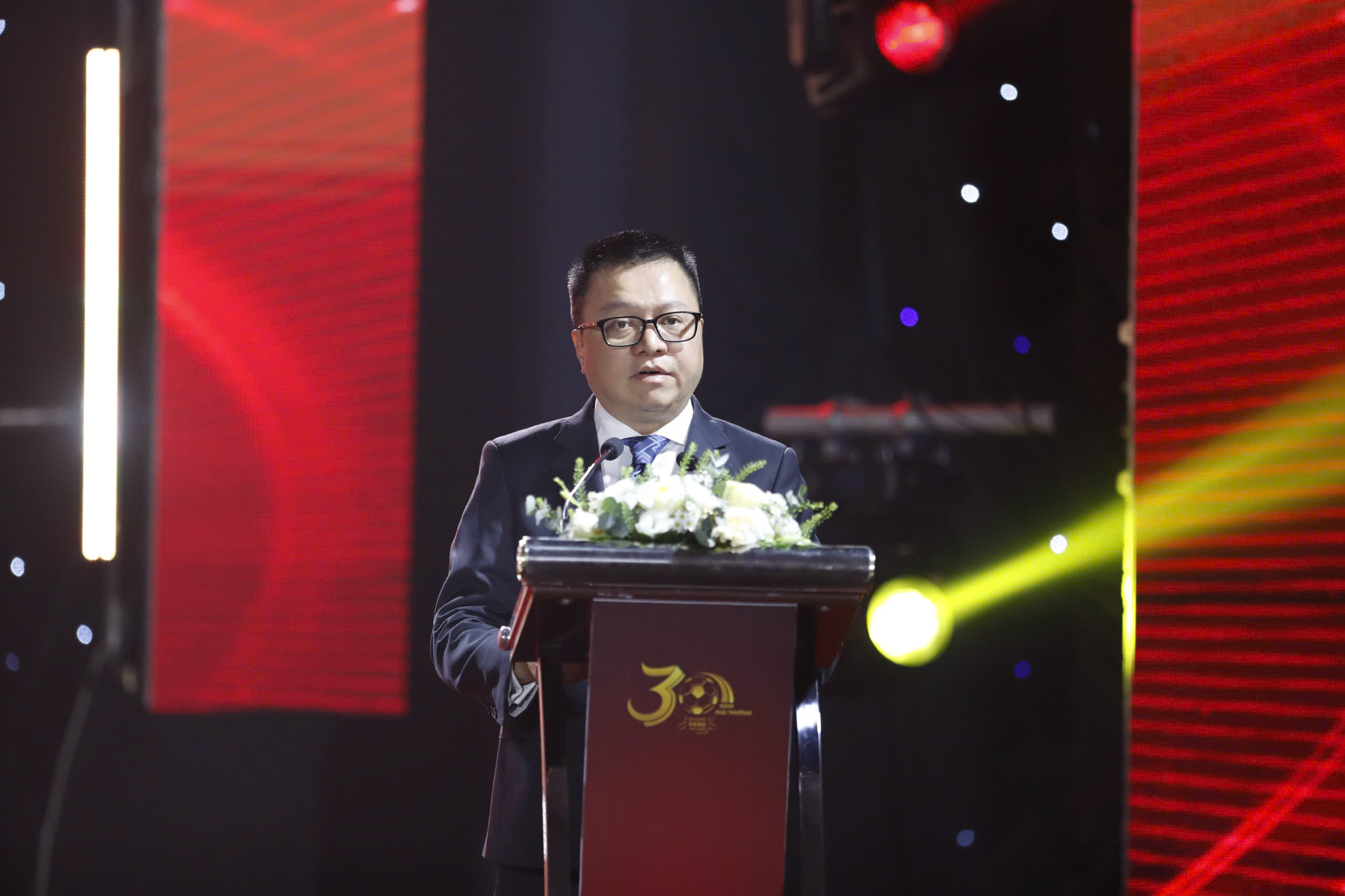 Ông Lê Quốc Minh, Tổng biên tập báo Nhân dân, Chủ tịch Hội Nhà báo Việt Nam phát biểu mở màn Lễ trao giải Quả bóng vàng 2025