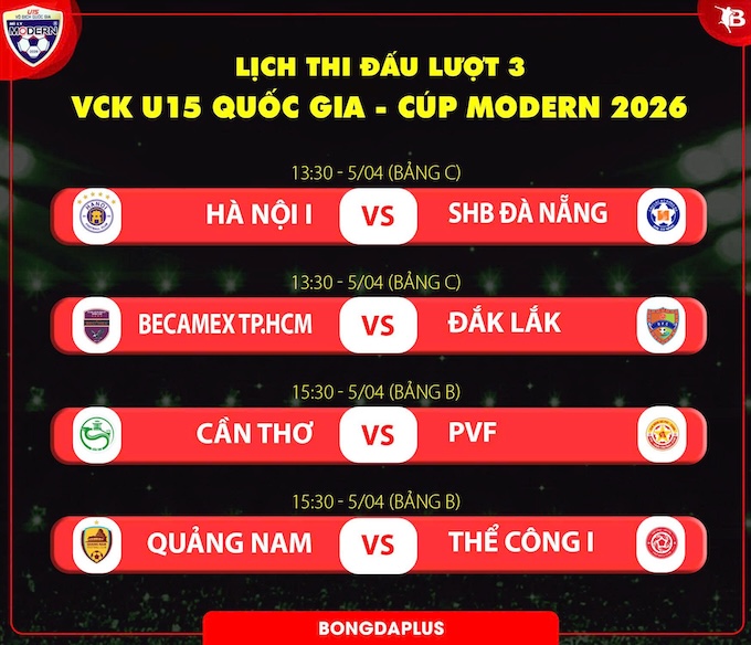 Trong khi đó, 2 trận đấu của bảng B sẽ diễn ra lúc 15h30 giữa Cần Thơ vs PVF và Quảng Nam vs Thể Công Viettel I. Ở bảng đấu này, cơ hội giành vé vào tứ kết đang thuộc về Quảng Nam và Thể Công Viettel I khi cả hai đang cùng 4 điểm. Tuy nhiên, đây sẽ là cuộc chiến mang tính “sống còn” giữa 2 đội bóng trẻ này, bởi chỉ có đội thắng mới giành quyền vào tứ kết.