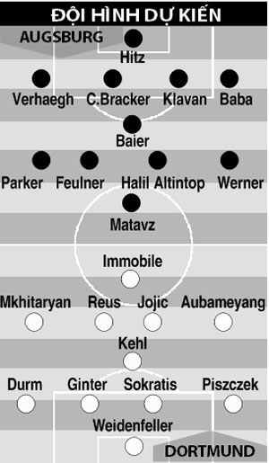 Nhưng Augsburg không phải là Leverkusen. Ở mùa này, Augsburg không có sự bổ sung đáng kể nào và đang là một trong những ứng viên sáng giá cho suất xuống hạng. Điều đó phần nào đã được thể hiện ở vòng 1 khi Augsburg để thua Hoffenheim dễ dàng 0-2. Sự chênh lệch về đẳng cấp giữa Augsburg và Dortmund không khó để nhận ra. Vấn đề chỉ là liệu các cầu thủ của đội bóng vùng Ruhr có thể lấy lại sự cân bằng, chơi bóng đúng với khả năng và phát huy hết điểm mạnh. Ở nhiệm vụ này, HLV Juergen Klopp cần phải phát huy được điểm mạnh trong cách dùng người cũng như kiêu binh để xốc lại tinh thần của toàn đội. Nếu làm được điều này, Dortmund sẽ lại trình diễn lối chơi tấn công bốc lửa và khi đó, 3 điểm là mục tiêu trong tầm tay đối với đội bóng vùng Ruhr.