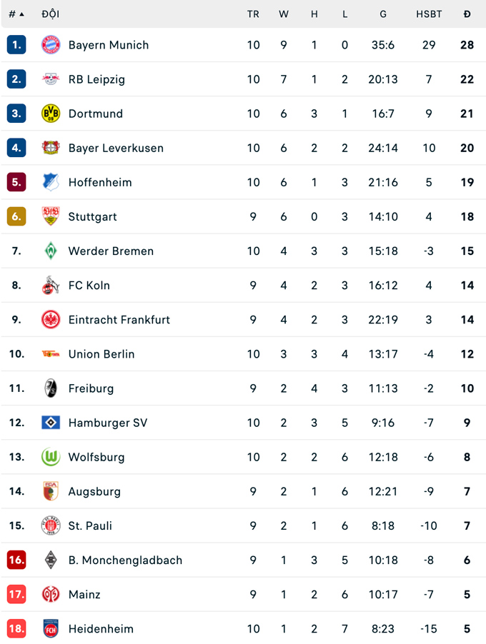 Trận hoà này khiến Bayern bị chặn đứng mạch toàn thắng trên mọi đấu trường. Họ vẫn đứng đầu trên BXH Bundesliga với 28 điểm sau 10 trận, hơn đội đứng thứ 2 là RB Leipzig 6 điểm.