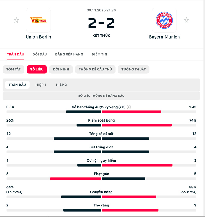 Hành quân tới sân của đội đang đứng giữa BXH là Union Berlin, Bayern tưởng như sẽ dễ dàng có được chiến thắng. Tuy nhiên, họ chỉ có được 1 điểm và phải rất chật vật mới thoát khỏi trận thua bẽ mặt.