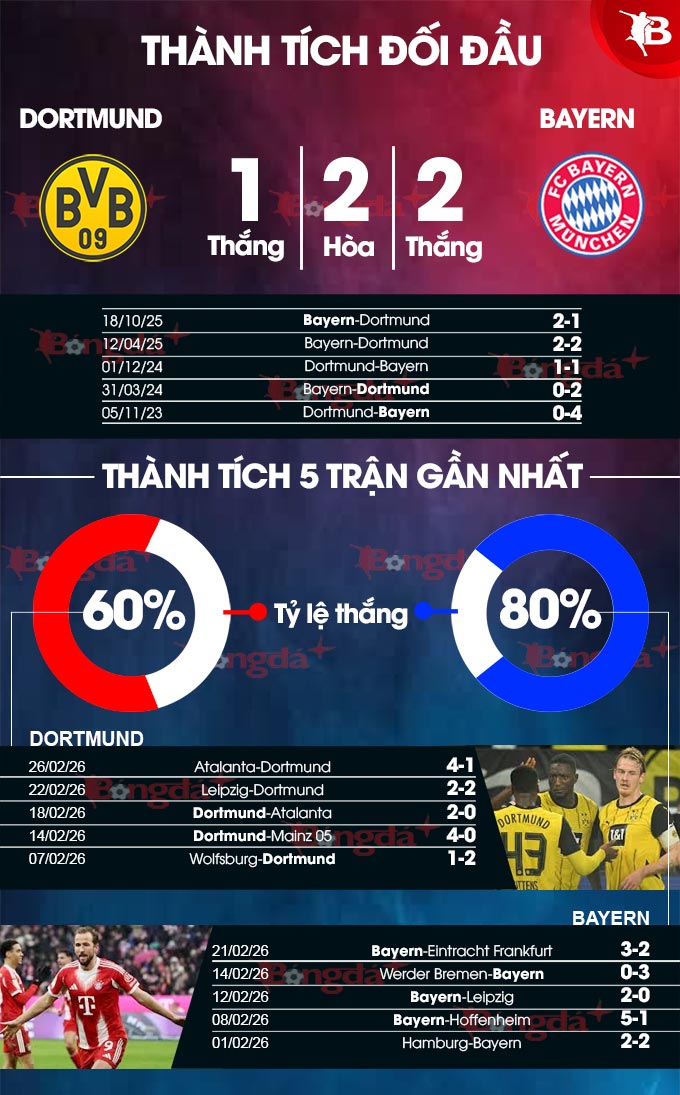 Dortmund và Bayern đều đang thể hiện sức mạnh đáng nể ở Bundesliga. Tuy không được lịch sử ủng hộ, Dortmund lại có lợi thế sân nhà. Đây rất có thể sẽ là điểm tựa giúp họ kiếm về ít nhất 1 điểm từ tay đối phương.