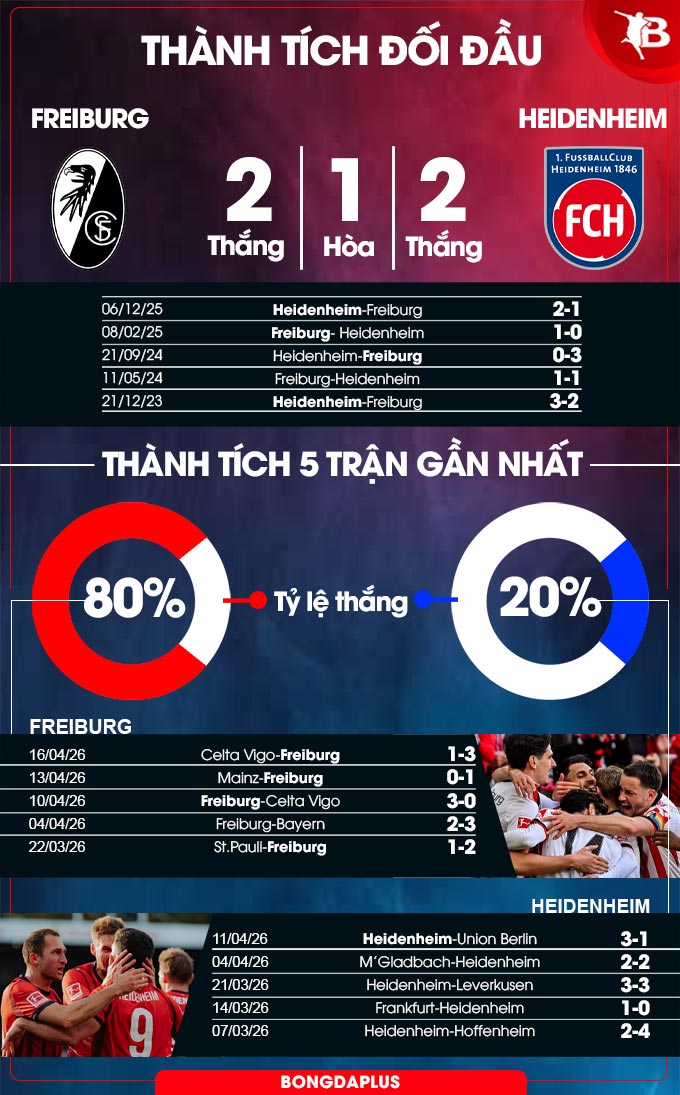 Chưa hết, Heidenheim còn đá rất tệ ở sân khách khi chỉ thắng 1/10 trận vừa qua. Ngược lại, Freiburg khá ổn ở sân nhà khi thắng 7/10 trận đã qua. Có lẽ, niềm vui sẽ ở lại với Freiburg.
