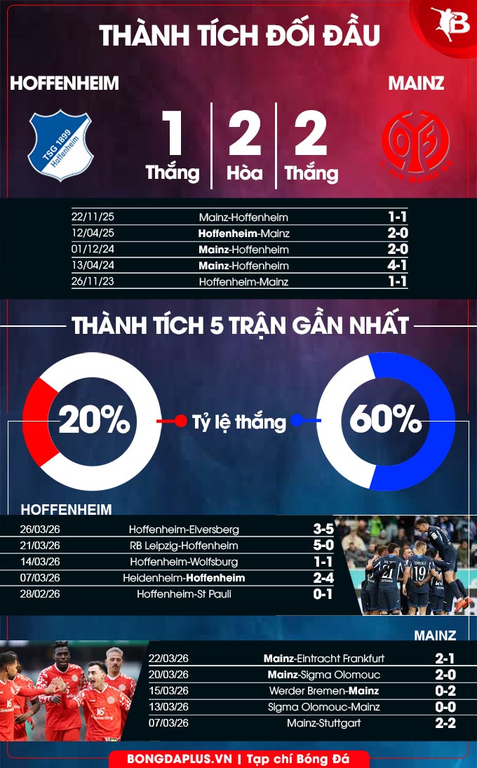 Phân tích phong độ Hoffeinheim vs Mainz