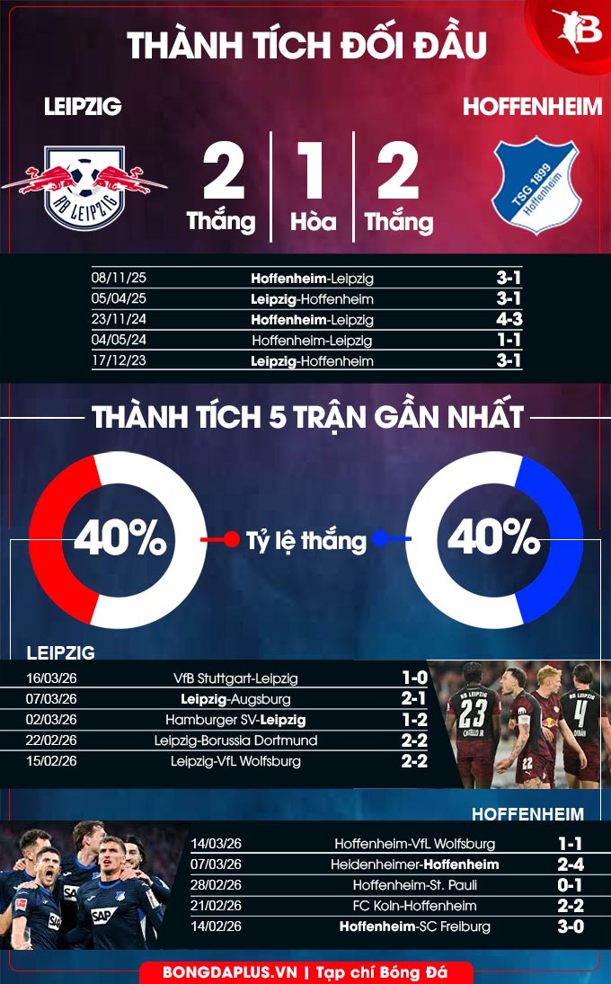 Dẫu vậy, Hoffenheim vẫn có điểm tựa là cái duyên sân khách, khi thắng 3/5 trận xa nhà gần đây. Điều này giúp họ có đủ tự tin để chơi đôi công với Leipzig – đội bóng luôn ưa thích tốc độ và áp đặt thế trận.