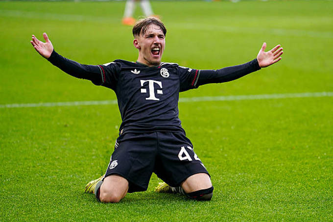 Phút 76, HLV Vincent Kompany tung Lennart Karl vào sân thay Luis Diaz. Chàng trai 17 tuổi chỉ cần đúng 5 phút để ghi dấu ấn. Nhận bóng từ Raphael Guerreiro ở rìa vòng cấm, Karl từ cánh phải đi bóng rồi xoay người cứa lòng cực hiểm hóc bằng chân trái. Trái bóng găm thẳng vào góc cao khung thành trước sự ngỡ ngàng của thủ môn đối phương, qua đó ấn định tỷ số 3-0 cho Bayern.