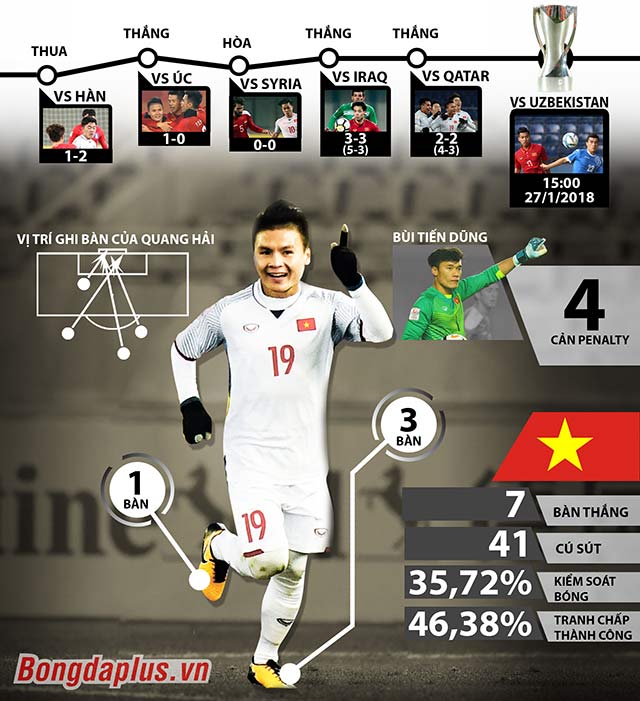 Quang Hải đã ghi 4 bàn thắng cho đội nhà. 3 trong số đó góp công vào thắng lợi chung cuộc của U23 Việt Nam. Một là bàn thắng giúp Việt Nam đánh bại 1-0 trước Australia. Hai bàn còn lại là hai lần anh toả sáng để kéo U23 Qatar từ thế dẫn trước trở về vạch xuất phát, trưóc khi Việt Nam đánh bại họ sau loạt luân lưu căng thẳng với tỷ số 4-3. Tờ Sina Sports nói rất chi tiết về Quang Hải.