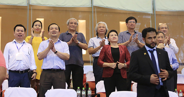 Cùng đi với Chủ tịch Quốc hội còn có các ông Uông Chu Lưu - Ủy viên Trung ương Đảng, Phó Chủ tịch Quốc hội Việt Nam; Phạm Gia Khiêm - Nguyên Ủy viên Bộ Chính trị, nguyên Phó Thủ tướng kiêm Bộ trưởng Bộ Ngoại giao; Nguyễn Hòa Bình - Bí thư Trung ương Đảng, Chánh án Tòa án Nhân dân Tối cao; Nguyễn Ngọc Thiện - Ủy viên Trung ương Đảng, Bộ trưởng Bộ Văn hóa - Thể thao và Du lịch; Lê Khánh Hải - Thứ trưởng Bộ Văn hóa - Thể thao và Du lịch; Vương Bích Thắng - Tổng cục trưởng Tổng cục Thể dục Thể thao; Lê Hùng Dũng - Chủ tịch LĐBĐ Việt Nam; Trần Quốc Tuấn - Phó Chủ tịch thường trực LĐBĐ Việt Nam.