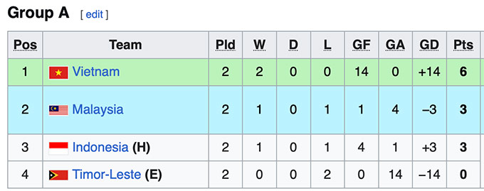 Nhưng ngay cả khi thua U17 Indonesia, U17 Việt Nam vẫn đứng nhất bảng trong một số điều kiện. Điều đó diễn ra trong trường hợp U17 Việt Nam thua U17 Indonesia 2 bàn trở xuống, cộng thêm U17 Malaysia thắng U17 Timor Leste. Khi đó, 3 đội Việt Nam, Indonesia, Malaysia cùng có 6 điểm. Xét thành tích đối đầu trực tiếp, 3 đội đều có 3 điểm khi thắng vòng tròn với nhau. Song xét về hiệu số khi đấu trực tiếp, U17 Việt Nam với mức +2 đến +3 (thắng 4-0 Malaysia, thua cách biệt 2 bàn trở xuống trước Indonesia) sẽ cao hơn so với Malaysia (hiệu số -3) và Indonesia (hiệu số tối đa +1 vì chỉ thắng nhiều nhất Việt Nam 2 bàn). Khi ấy, U17 Việt Nam đứng nhất bảng và đi tiếp.