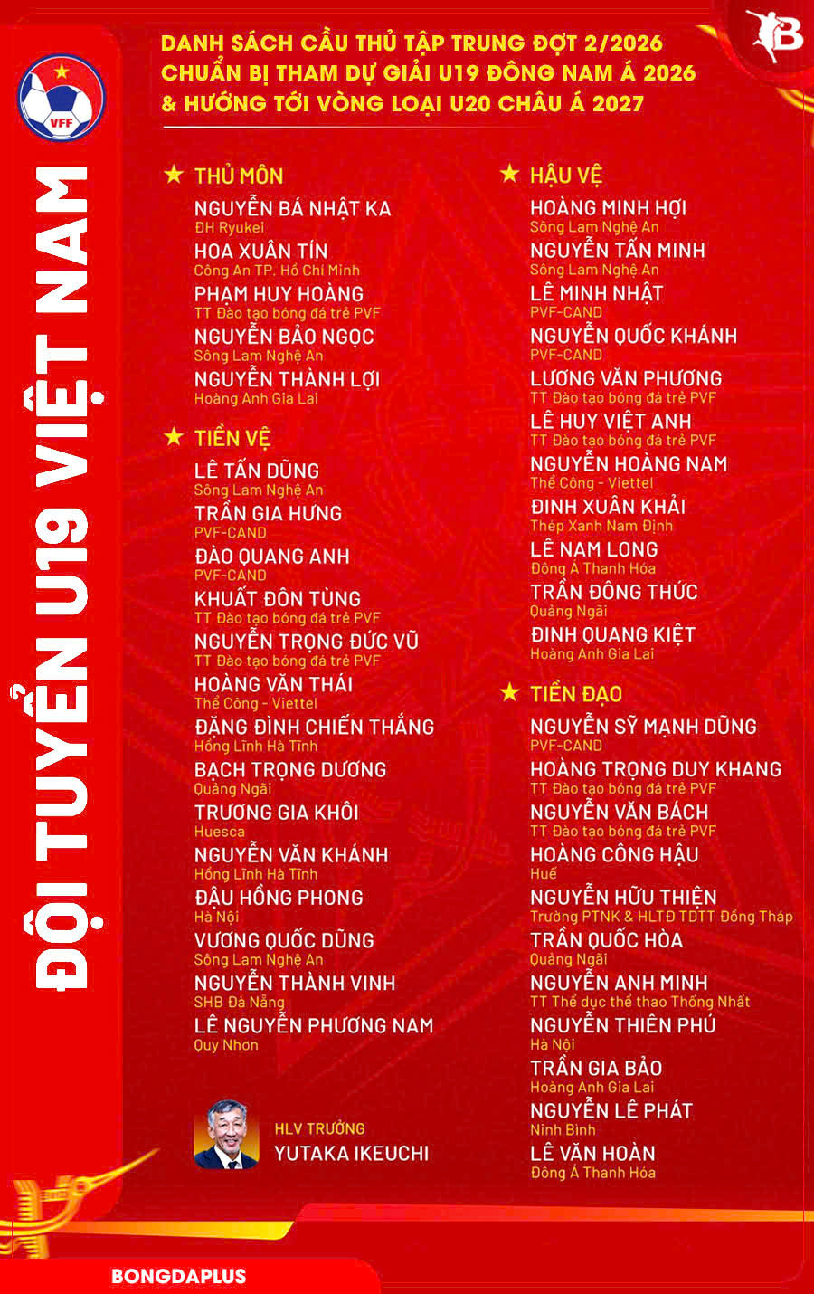 Ở đợt hội quân lần này, HLV trưởng Yutaka Ikeuchi cùng các cộng sự tiếp tục xây dựng kế hoạch chuyên môn với danh sách 41 cầu thủ. Mục tiêu là hoàn thiện bộ khung đội hình tối ưu, đảm bảo sự chuẩn bị kỹ lưỡng cho giải đấu khu vực sắp tới cũng như các nhiệm vụ quốc tế trong tương lai.