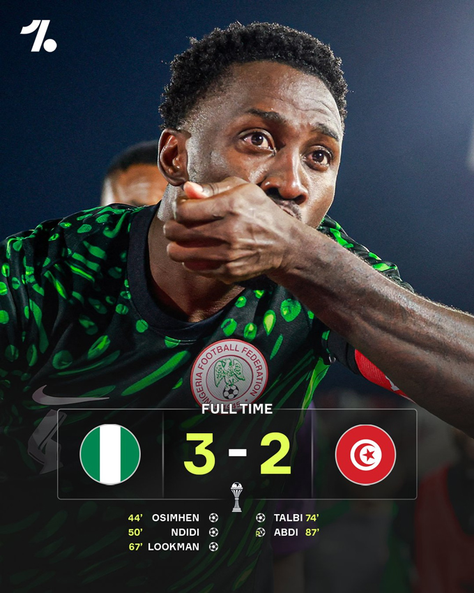 Trong khi đó tại bảng C, Nigeria đã chính thức giành vé qua vòng bảng sau chiến thắng vất vả 3-2 trước Tunisia. Đại bàng xanh dẫn trước 3-0 sau 67 phút thi đấu nhờ các bàn thắng của Osimhen, Ndidi và Lookman. Tuy nhiên, Tunisia đã ghi liền 2 bàn ở các phút 74 và 87 khiến những phút cuối trở nên cực kỳ căng thẳng.